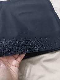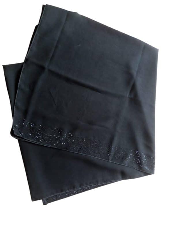 Durable and easy to maintain, this chiffon hijab retains its elegance after multiple washes. It’s the perfect addition to any wardrobe, providing a balance of modesty and modern fashion. Whether for daily wear or festive events, the Black Chiffon Staller Burkha Hijab with Stone Work ensures you make a statement with grace and elegance.